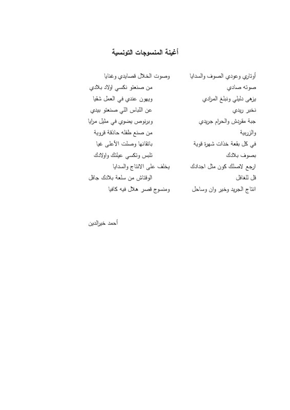 - Ughniyyat al-mansūjāt al-tūnisiyyah