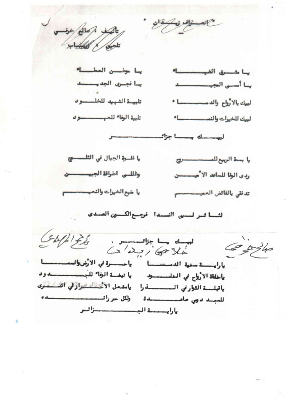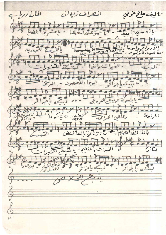 - ar العنوان الأصلي ليس للأغنية بل هو وصف لمقامها وإيقاعها ـ الترقيم الموسيقي يوحي أن الأغنية في إيقاع الانصراف الجزائري