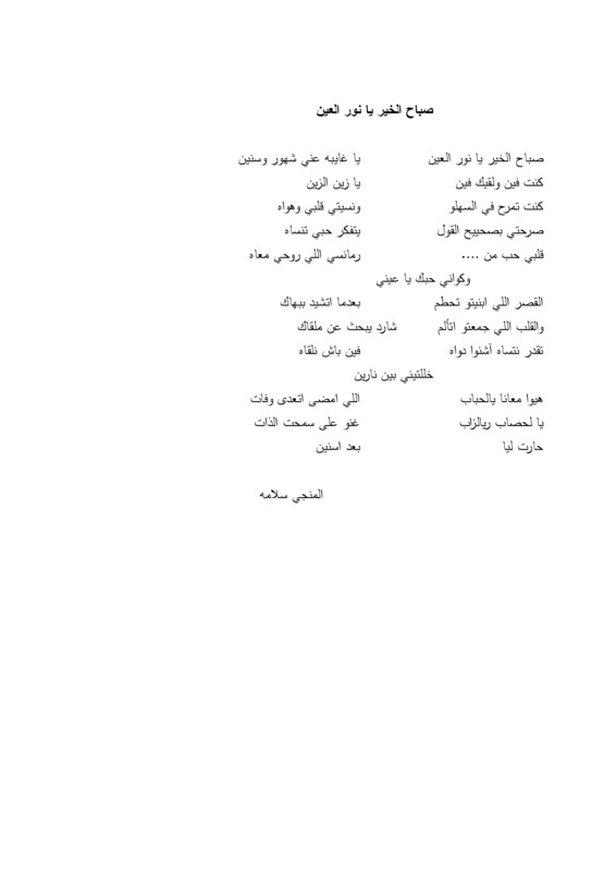 - Ṣabāḥ al-khayr yā nūr al-ʻayn