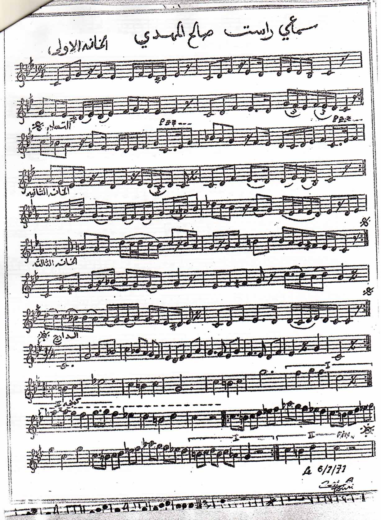 - ar هو باكورة سماعيات الأستاذ صالح وقد لحنهسننة 1938 أي عن سن تقارب الثالثة عشرة