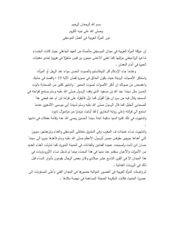 - fr Le rôle des femmes arabes dans le travail de la musique