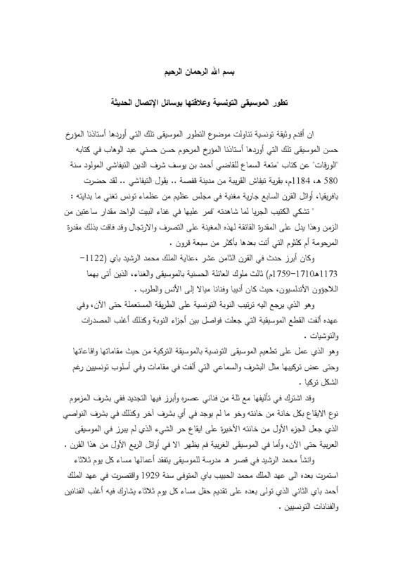 The evolution of Tunisian music and its relationship to means of communication pressed