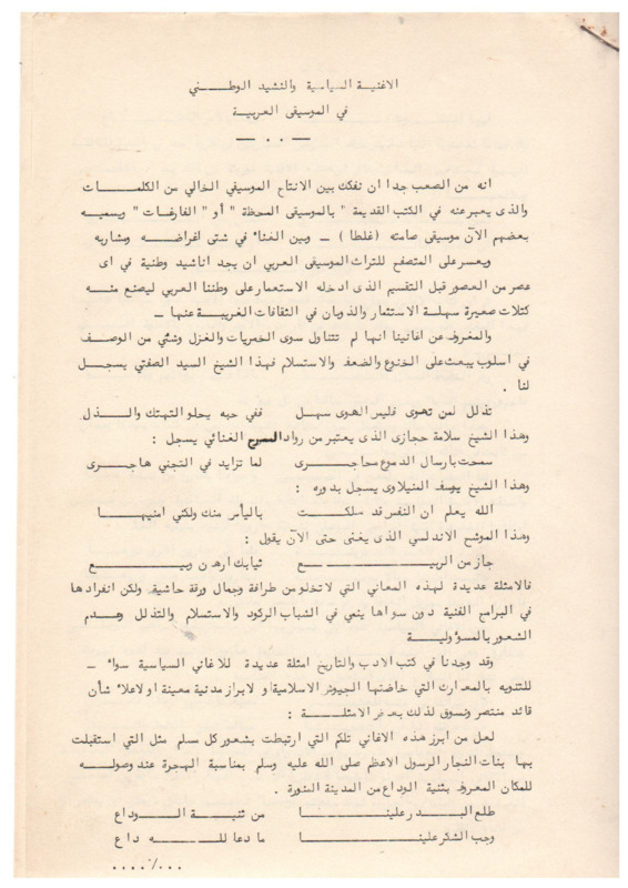 - fr Chanson politique et l'hymne national dans la musique arabe