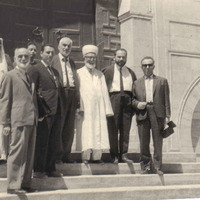 الأستاذ صالح المهدي + الوفد التركي يتقدمه رئيس الشؤون الدينية (باللباس التقليدي) و في الصف الأول على الشمال الأستاذ عبد الرحمان يورسس (إمام جامع بيازيد) و ورائه المندوب السعودي
