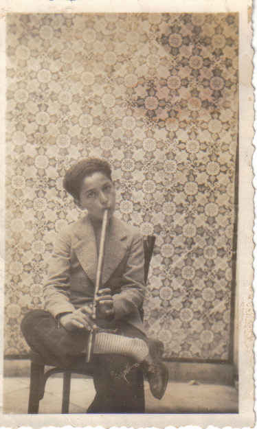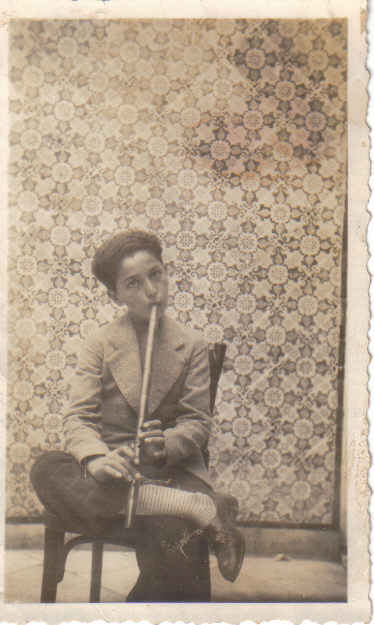 - الأستاذ صالح المهدي في سن الثانية عشرة يعزف على الناي