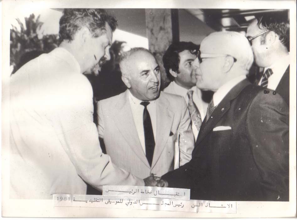 الاستاذ صالح المهدي للرئيس حبيب بورقيبة رئيس المنظمة العالمية للفنون و التقاليد الشعبية