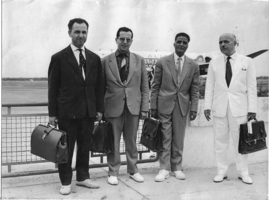 الأستاذ صالح المهدي الأول يسارا حذوه الأستاذ طاهر قيقة ثم السيد عبد الوهاب بشير ثم الهاشمي السلامي