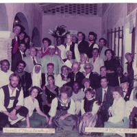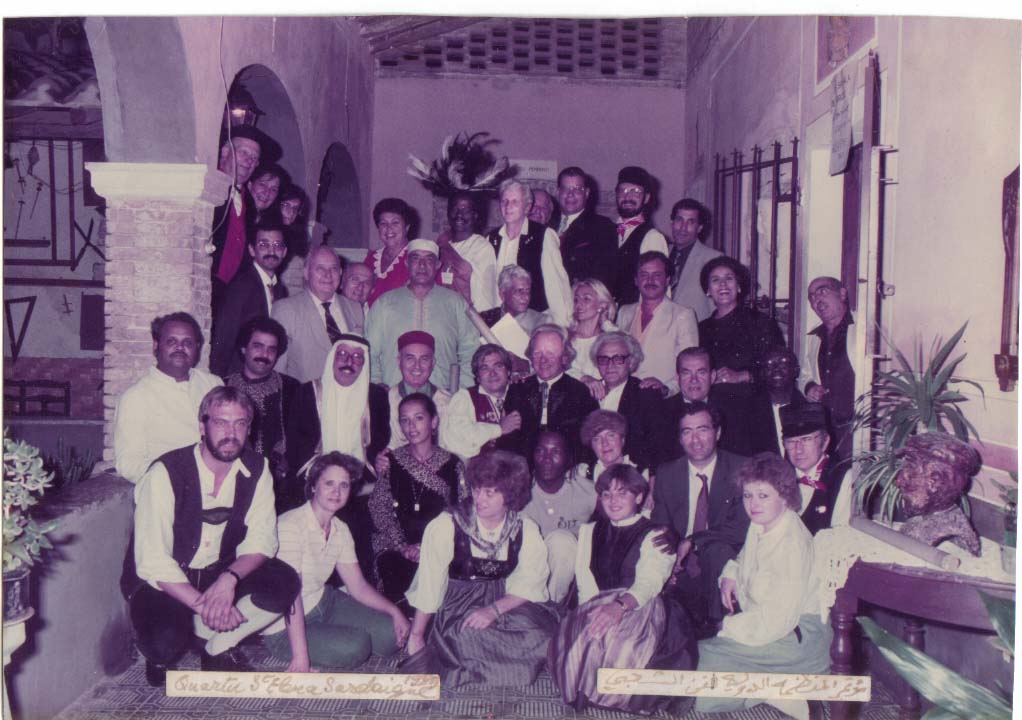الأستاذ صالح المهدي ( رئيس المنظمة يرتدي اللباس التقليدي ) وراءه السيد أحمد شفيق أبو عوف ( باللباس التقليدي ) و بجانبه مندوب السعودية ( باللباس التقليدي )