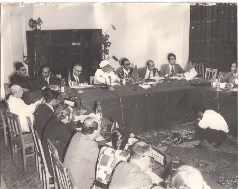 الأستاذ محمد الفاسي ( رئيس المؤتمر و وزير الثقافة المغربية وهو باللباس التقليدي ) و الحاج إدريس بن جلول ( يظهر باللباس التقليدي في أول الصورة على اليسار و هو رئيس جمعيات الموسيقى الأندلسية بالمغرب ) و يظهر أيضا الأستاذ صالح المهدي