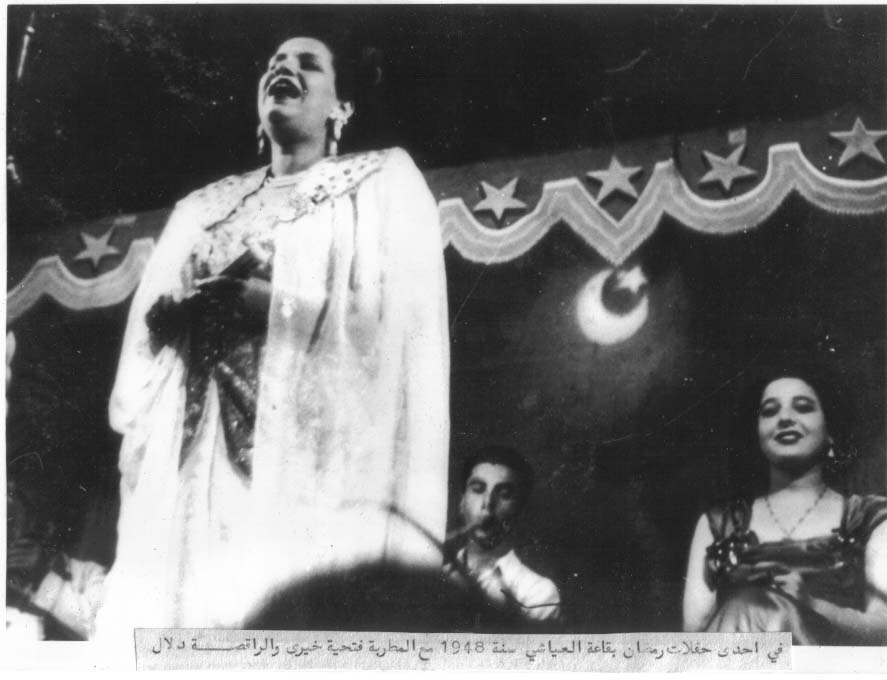 The singer Fathia Khairi (the most prominent female vocalist in Tunisia at that time) with the dancer Dalal.